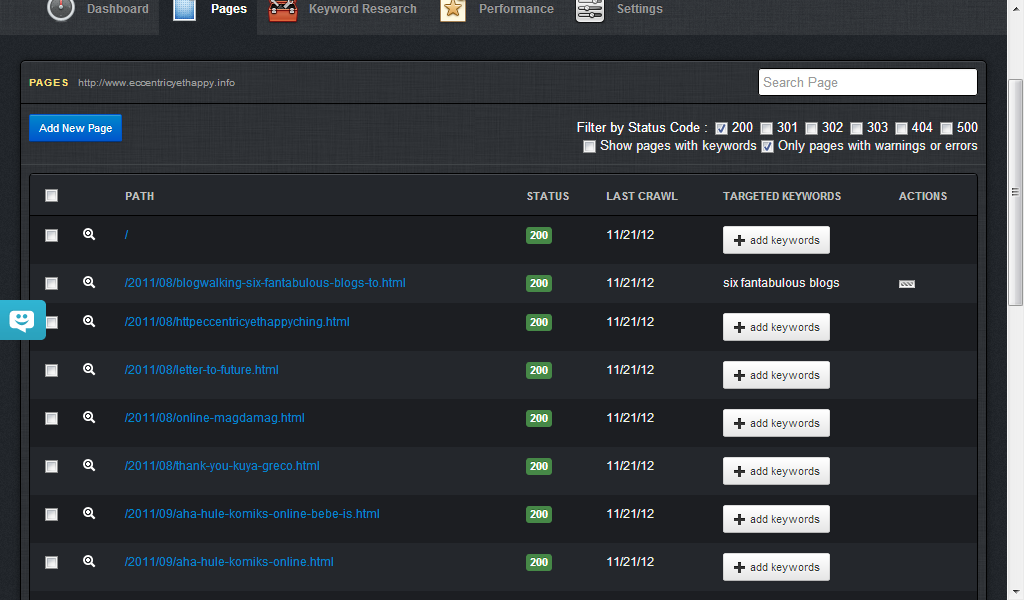 | You can add your keywords here on Pages tab of your dashboard. I already add new keywords on my blog. And it helps me a lot to drive website traffic everyday. |
