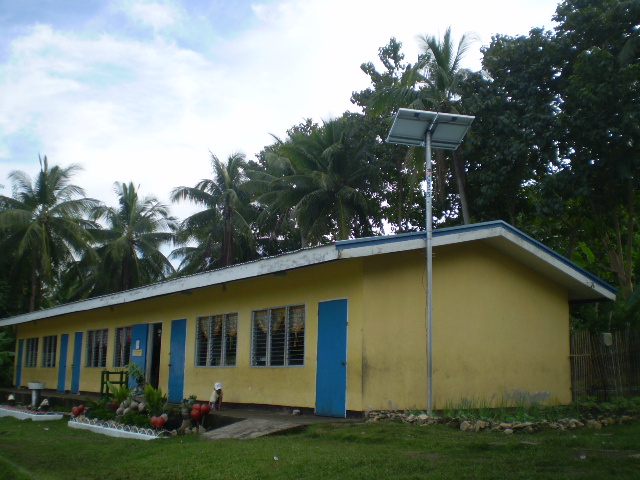 In Luna, Apayao: a pole mounted solar panel stands next to a school