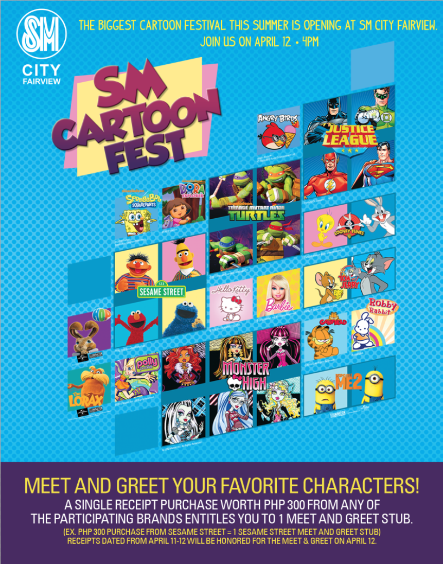 As SM Supermalls brings you SM Cartoon Fest. It will be held on April 12 at Atrium Annex, SM City Fairview, 4 o’clock in the afternoon.