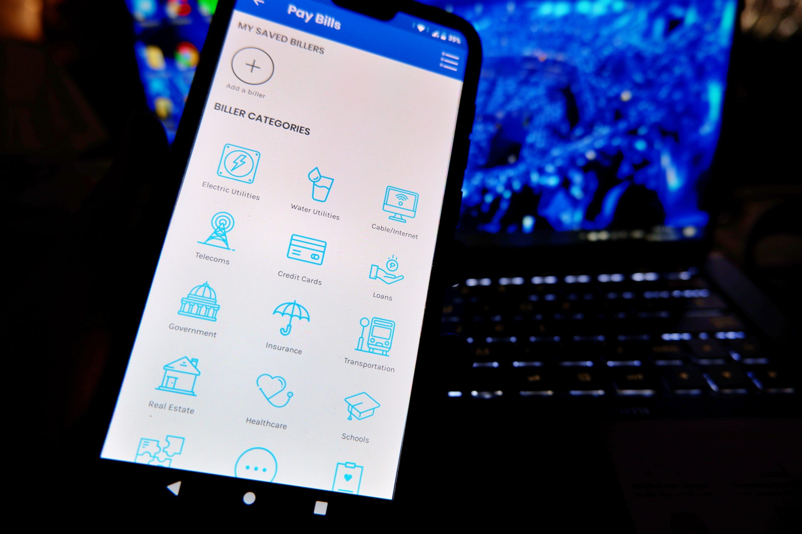 • If you’re planning to pay your electric, internet or water bills, select Biller Categories.